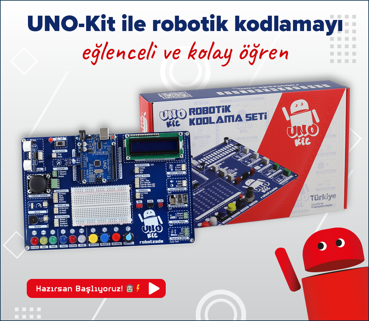 + UNO-Kit ile robotik dünyasına adım atmak hem daha kolay hem de daha keyifli!
