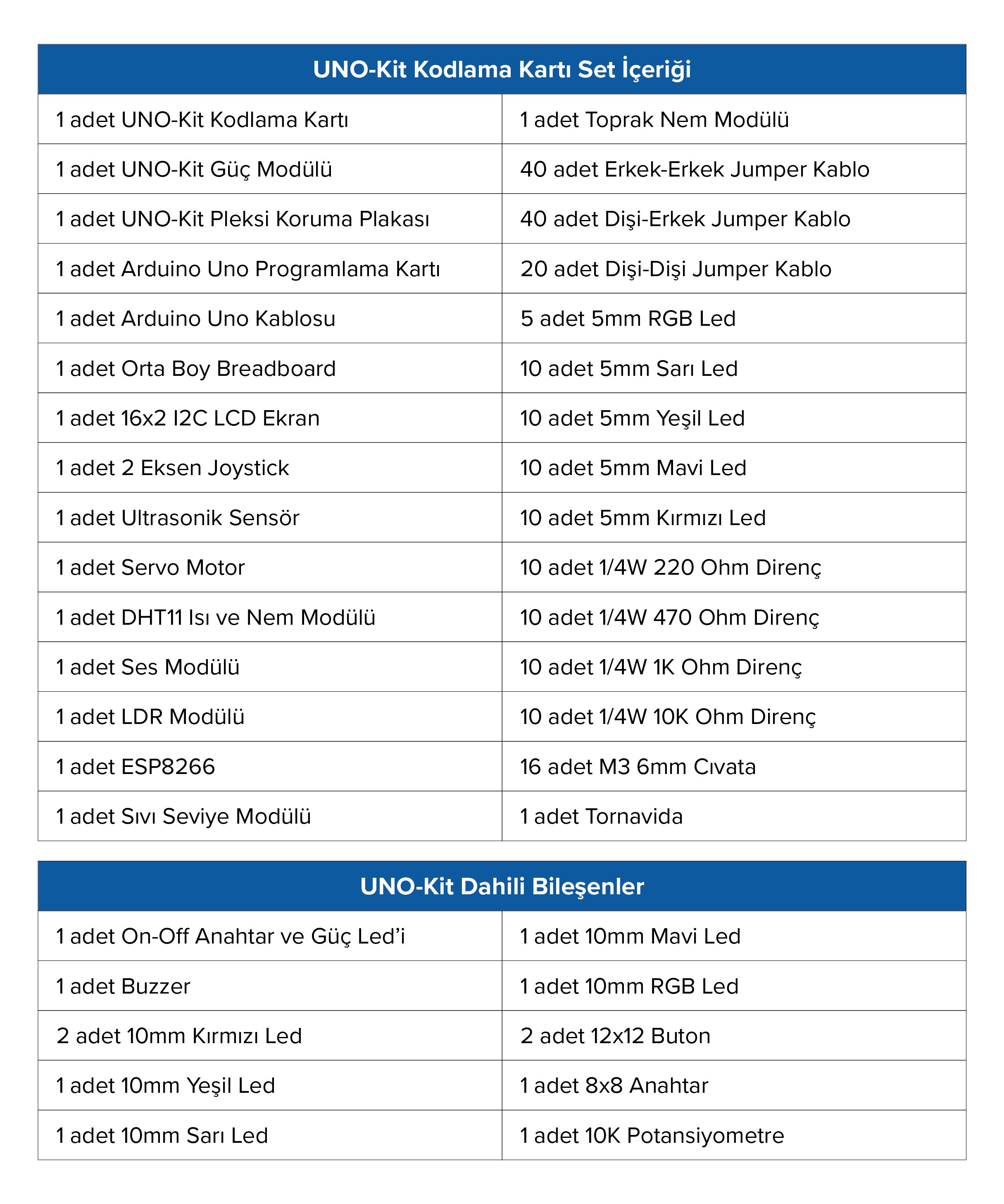Yaklaşık 300 farklı projeye olanak sağlayan zengin içeriği sayesinde, UNO-Kit temel seviyeden ileri seviyeye kadar birçok yaş grubuna hitap etmektedir. Elektronik ve yazılımın birleştiği bu kodlama kartı ile elektronik bağlantıların temelini öğrenebilir, yaratıcılığınızı geliştirerek daha karmaşık projelere adım atabilirsiniz.