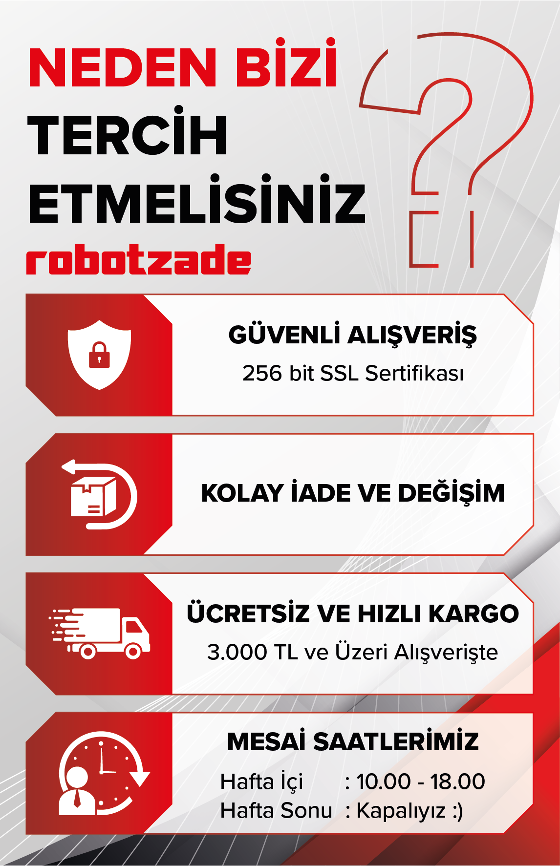 10:00 - 18:00 destek@robotzade.com