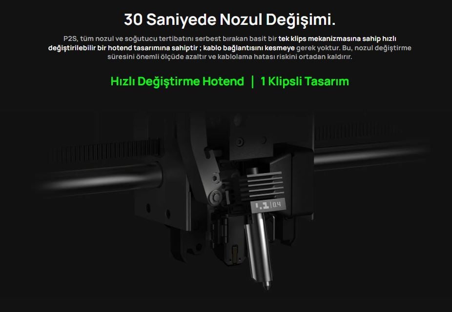 - Nozul: 0.4 mm sertleştirilmiş çelik
