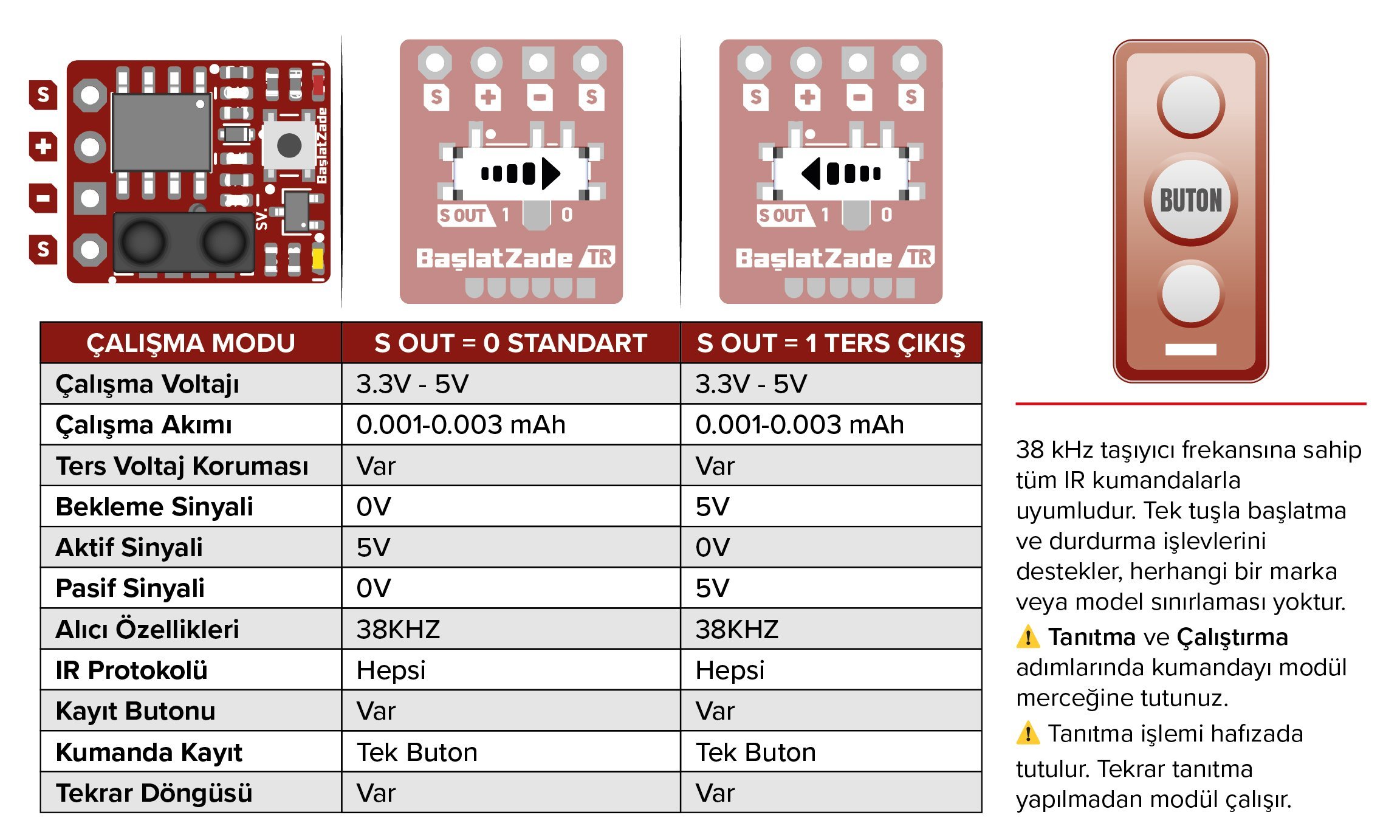 BaşlatZade Başlatma Modülü dişi ve erkek 4'lü pinler ile gönderilmektedir, bu sayede tüm devrelerinize rahatlıkla montaj yapabilirsiniz.