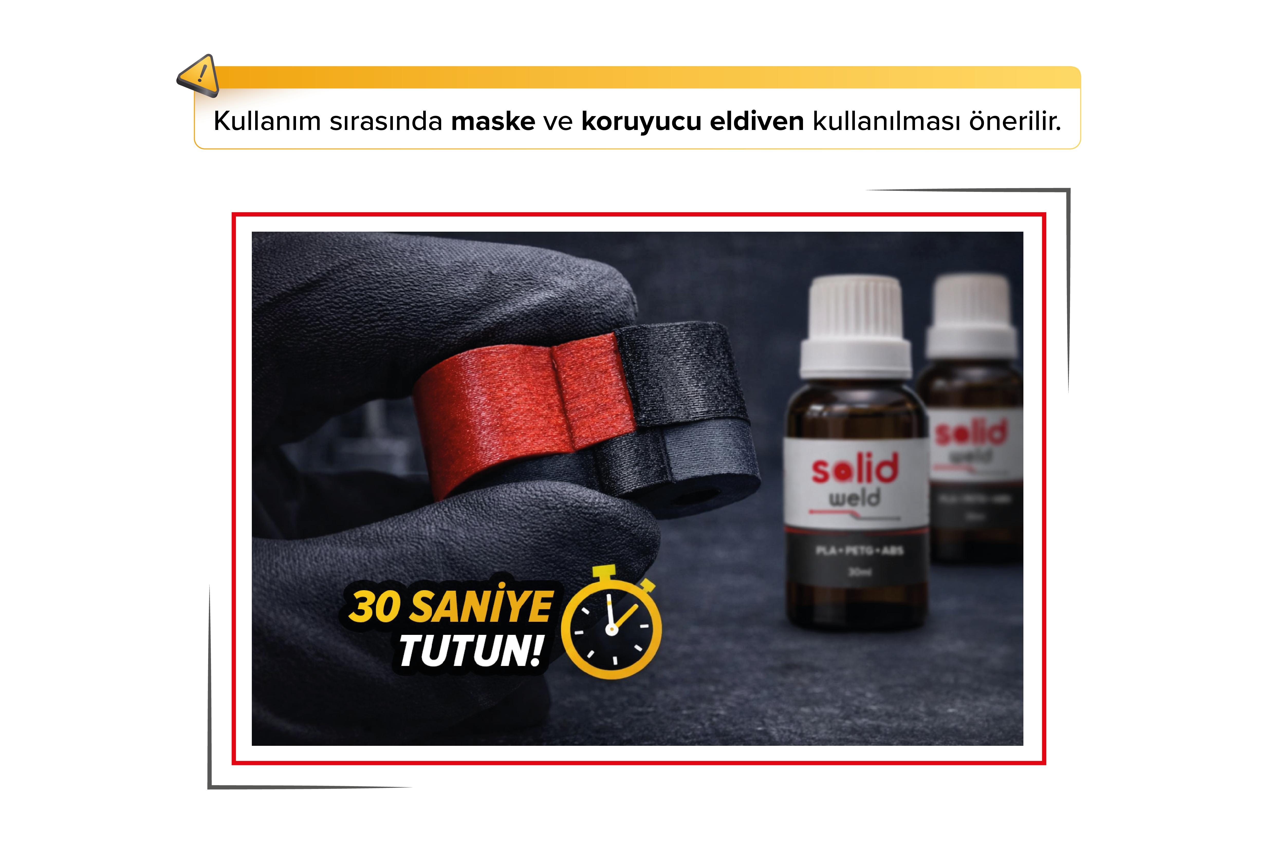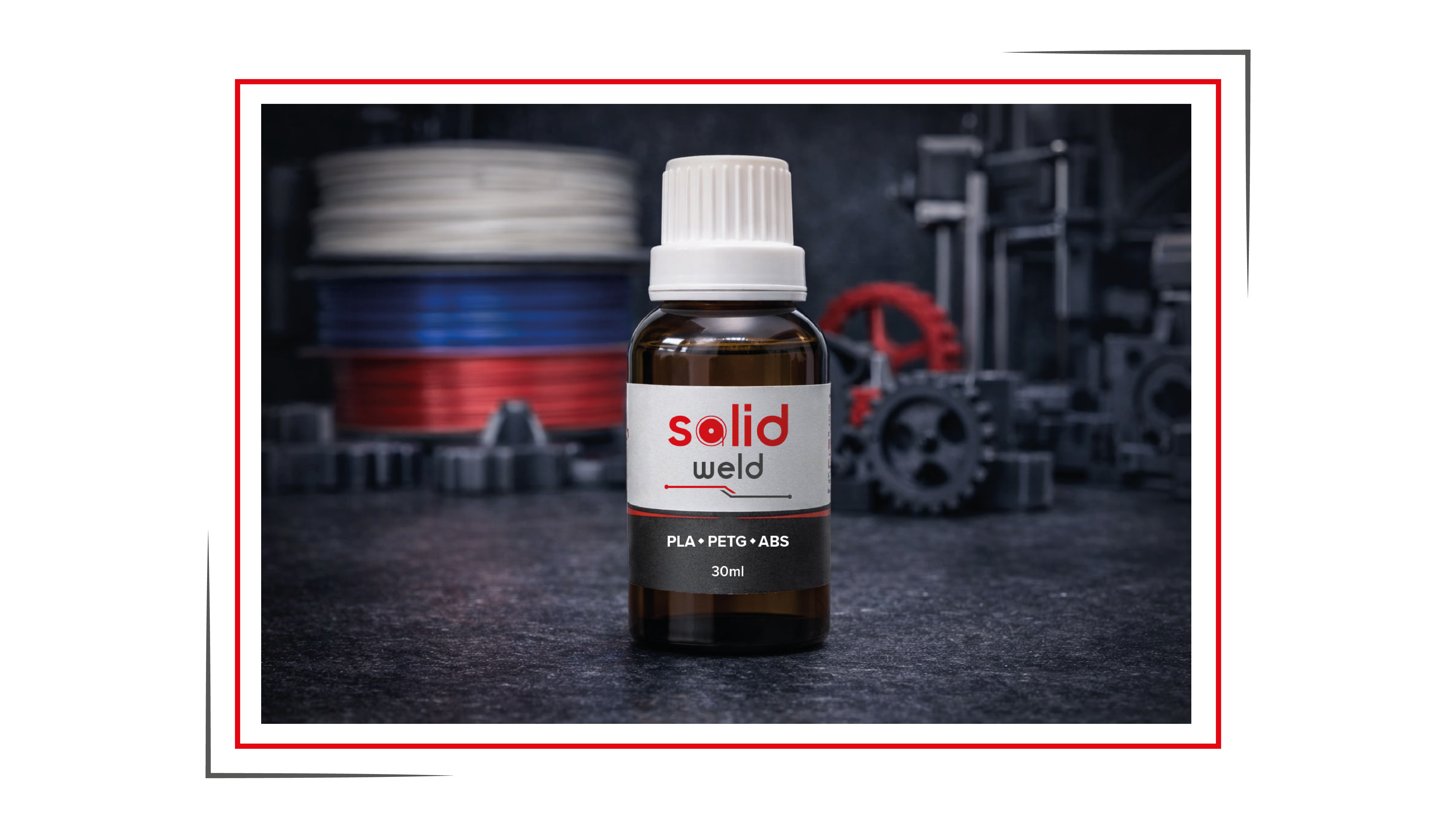 Yapıştırıcıyı Unutun, Tek Damlada Kaynak. Solid Weld, PLA, PETG ve ABS gibi yaygın 3D baskı termoplastiklerinin birleştirilmesi için geliştirilmiş, yüksek dayanımlı ve malzeme uyumlu bir birleştirme solüsyonudur.