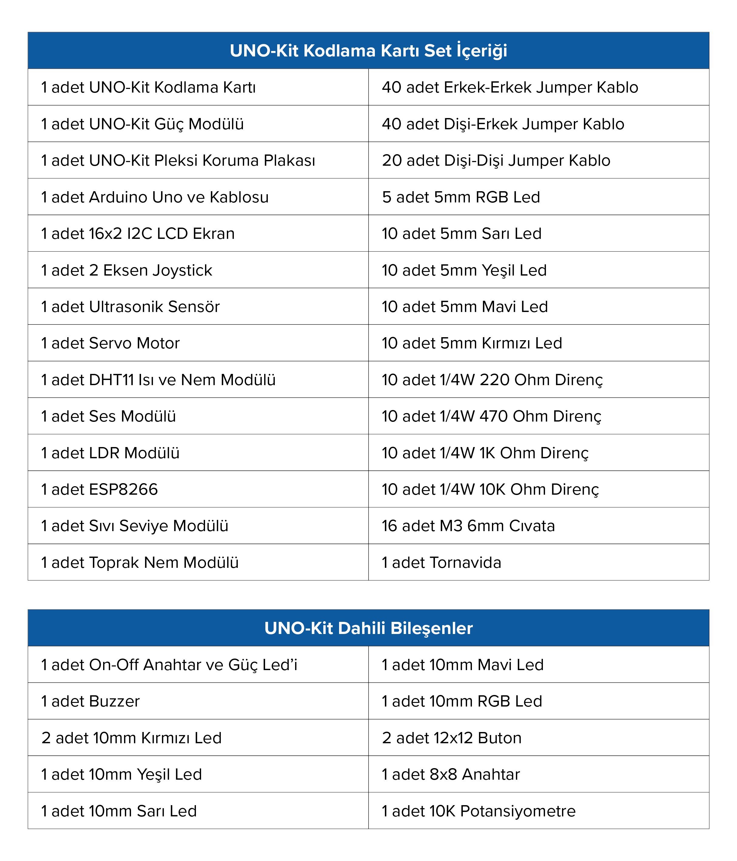 Yaklaşık 300 farklı projeye olanak sağlayan zengin içeriği sayesinde, UNO-Kit temel seviyeden ileri seviyeye kadar birçok yaş grubuna hitap etmektedir. Elektronik ve yazılımın birleştiği bu kodlama kartı ile elektronik bağlantıların temelini öğrenebilir, yaratıcılığınızı geliştirerek daha karmaşık projelere adım atabilirsiniz.
